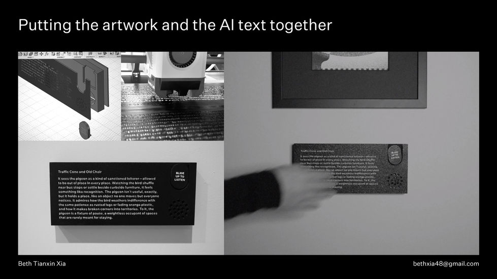 This is an art project about AI, commissioned by Nottingham University. It explores the interaction between human and machine, using nonsensical questions to prompt a Large Language Model to generate strange responses that become sources of inspiration for human-generated art.